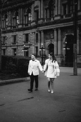 Following the heartfelt ceremony, the newlyweds took to the streets of Glasgow to capture the magic of the moment. Wandering down Cochrane Street towards George Square, Kimberly and Kenneth, like characters from a 60s movie, exuded an undeniable charm and grace. The city became their canvas, and each snapshot immortalized the love they shared.